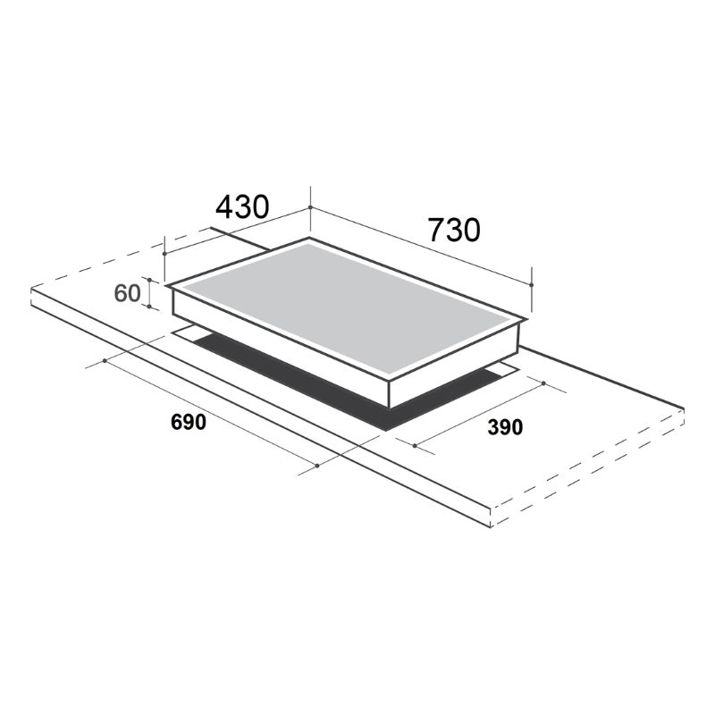- Kích thước khoét đá: 680 x 390 mm