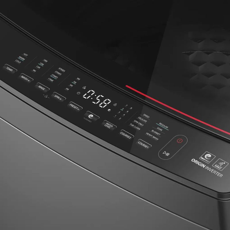 - Cửa máy giặt chất liệu kính cường lực, hỗ trợ đóng chậm an toàn