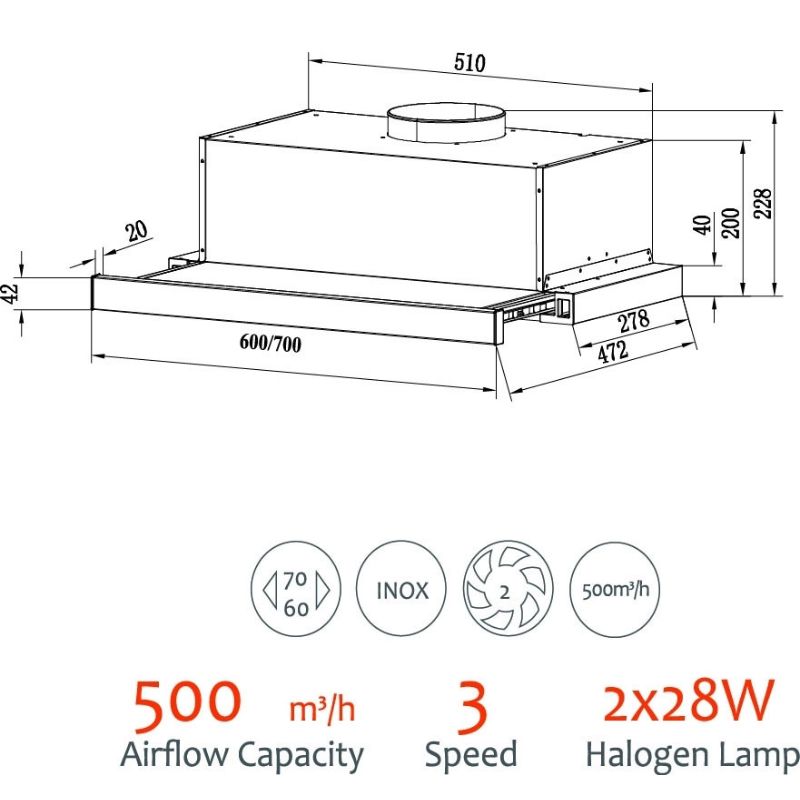 - Kích thước khoét tủ (R x C x S): 700 x 287 x 200 mm